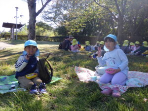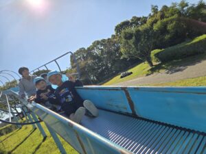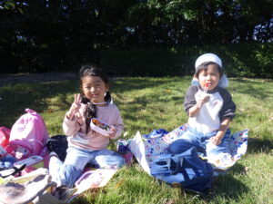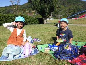 お家の人が作ってくださったお弁当をいただいてから、大型遊具をたのしみました。