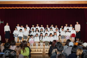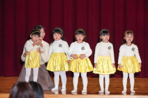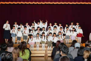 年長・年中児のハンドベル奏、クリスマスの歌、三津教会の森分牧師のメッセージです。
