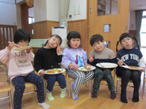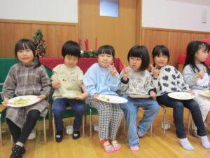 12月の誕生日会の後、毎年恒例になったクリスマスパーティーをいたしました。