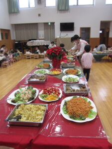 給食先生が早くから計画して下さったお料理、豊かな食事の時を過ごしました。神様の恵みに感謝です。