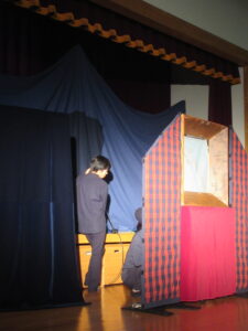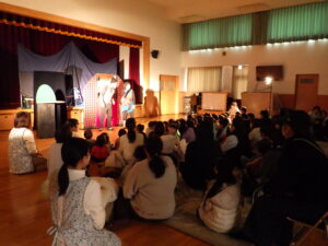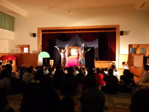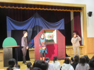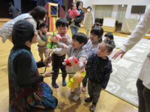 現在、沖縄にいらっしゃる「人形げきや おたこぐみさん」が園に来てくださり人形劇をしてくださいました。久しぶりにお会いできてとても懐かしかったです。軽快な音と愉快なお話に釘付けになり、おたこぐみさんとのやりとりも楽しみました。