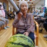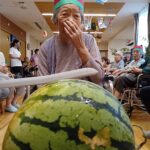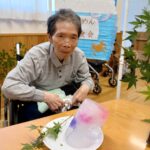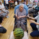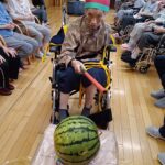 施設で準備したスイカの他にいただいたスイカもあり、8月にもスイカ割りを行いました