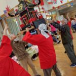 「ワッショイ!ワッショイ!」の掛け声に合わせ、神輿が練り歩くと会場のボルテージは最高潮に、男性利用者も神輿の差し上げにご協力くださり、お神輿の力強い動きと熱気に心も体も元気になった1日でした。