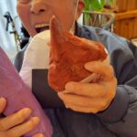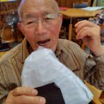 「頑張れ!」とご利用者様からの熱い声援が飛び交い、豪快にせんべいを頬張る職員の姿に皆様大笑いされていました。