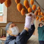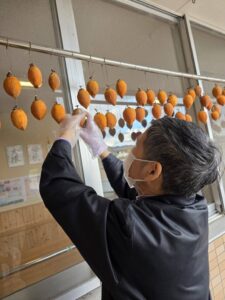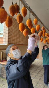 前回皆さんと作った干し柿も1週以上経つので今日は利用者さんと揉む作業を行いました。