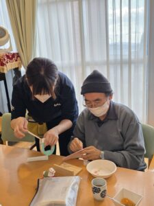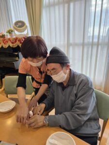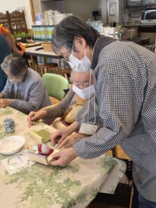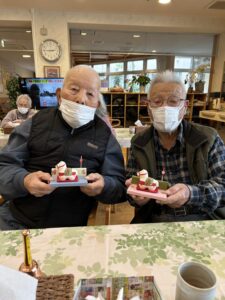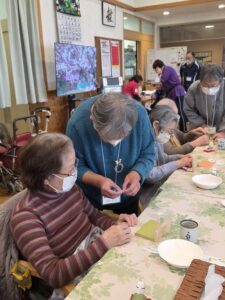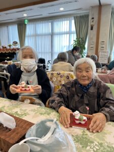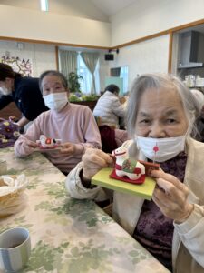さて今日の行事は年末恒例の持ち帰り工作として「干支の置物」を作成しました。