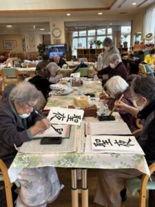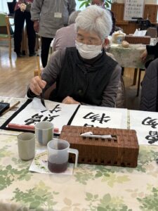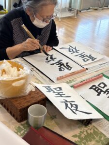 墨の香りが漂う中、皆さま集中して筆をはしらせます。