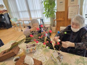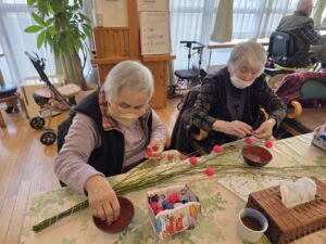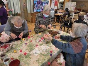 また、年の瀬という事で皆様にご協力いただき、「もち花作り」を行いました。
