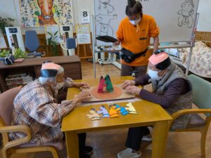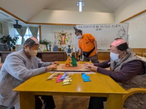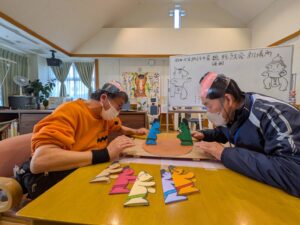 そんな寒さを吹き飛ばすべく、午後のデイルームでは「紙相撲大会」を開催!
