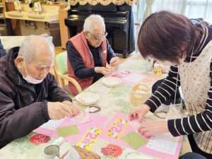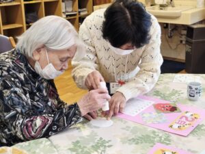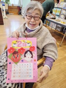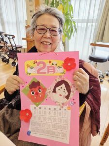 午後のレクリエーションは「2月のカレンダー作り」に挑戦しました。