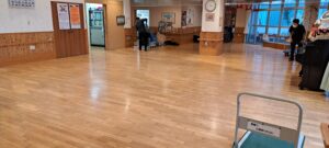 今日は、年に一度の床のワックスがけを行いました。実は感染予防の影響でしばらく実施できていなかったのですが、ようやく今日、念願の作業を行う事ができました。