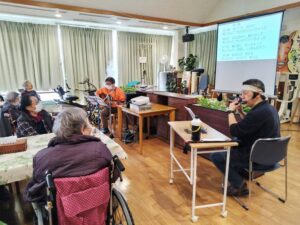 ギターの調べに太鼓のリズムが加わると、さらに熱気を帯び、皆様の手拍子と歌声で大いに盛り上がりました。