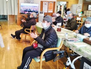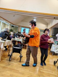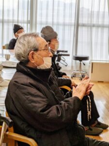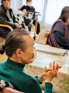 お迎えに伺うと利用者からは「今日は雪が積んどるなぁ」と冬の訪れを楽しむような笑い声が聞かれました。