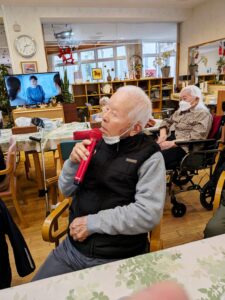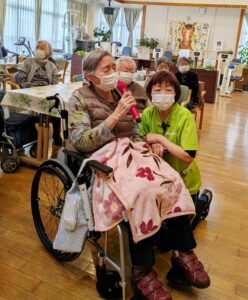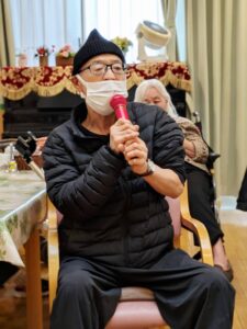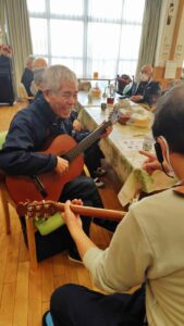 歌の後は職員と利用者様によるギターセッションも飛び出し、手拍子と共に笑顔溢れる賑やかなひと時を過ごしました。
