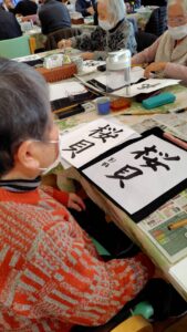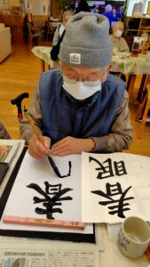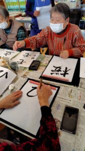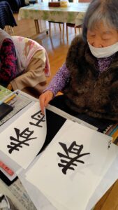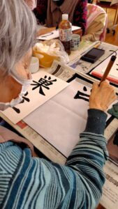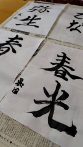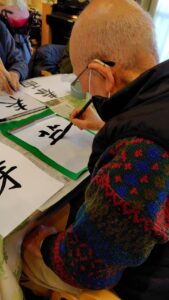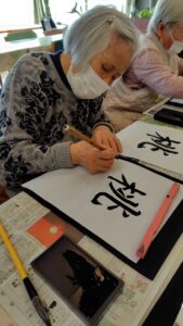 それぞれが思い思いのお手本を選び、半紙に向き合います。