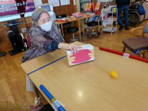 今日の行事は「テーブルホッケー」