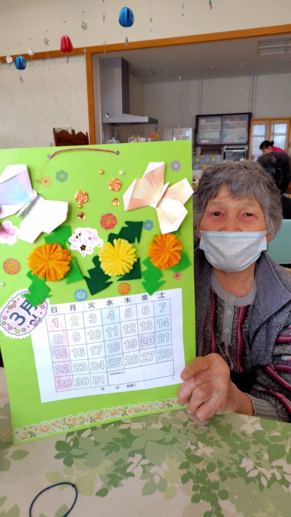 デイサービスでは午後、3月のカレンダー作りをしました❗