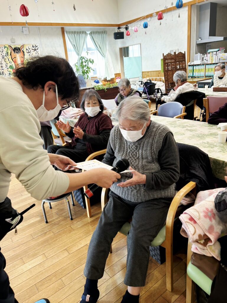 受け取った瞬間の皆さんの表情は驚くほどキラキラと輝いていました。皆さんの嬉しそうな顔を見て、我々もパワーをもらいました。