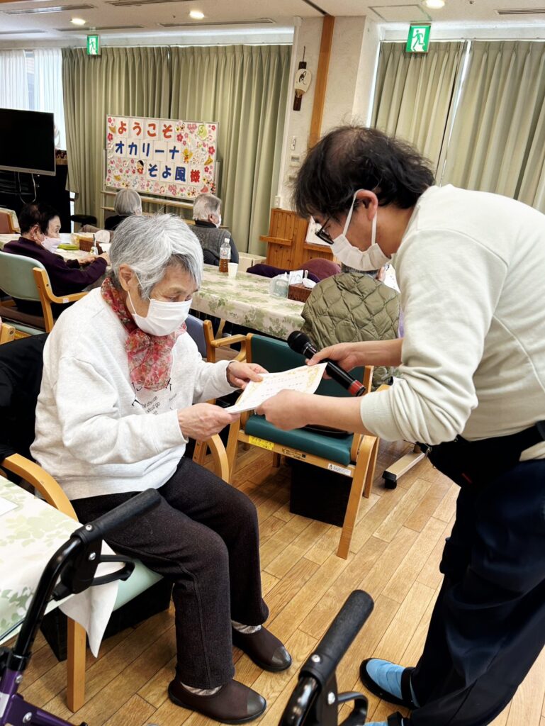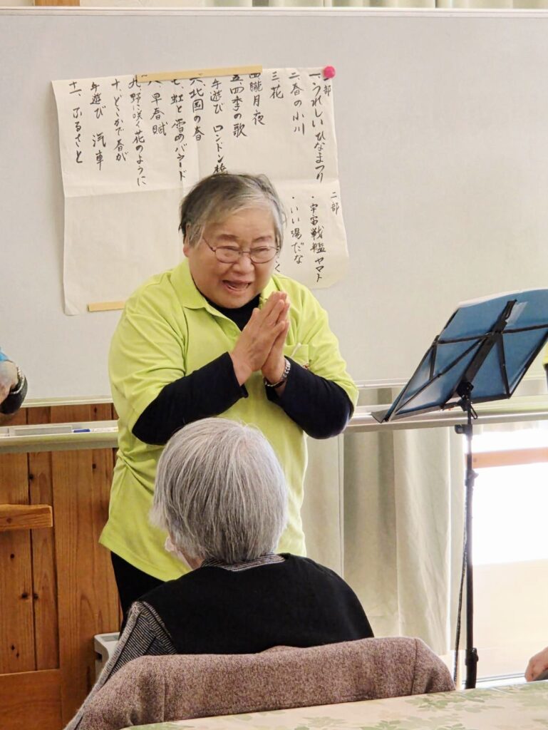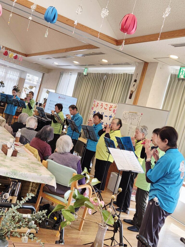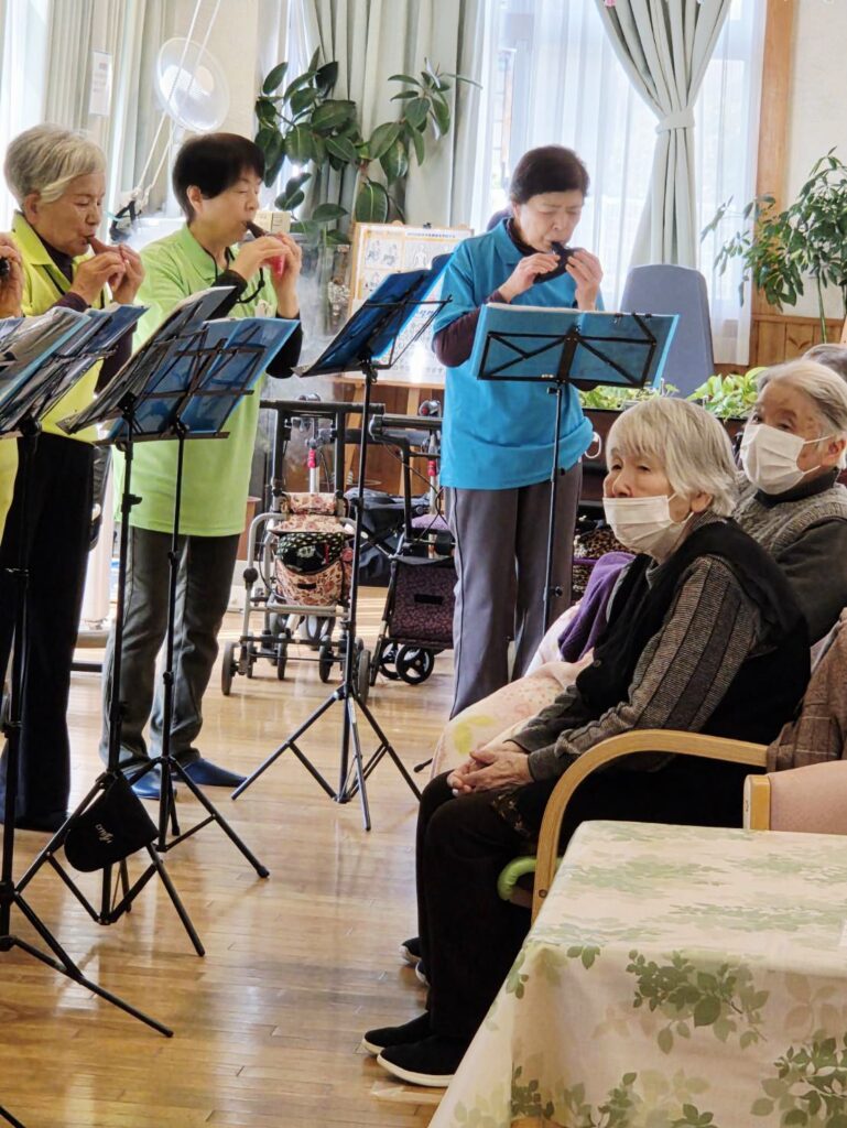 今日の行事は東温市で活動されている「オカリーナそよ風」の皆様をお招きして慰問演奏会。