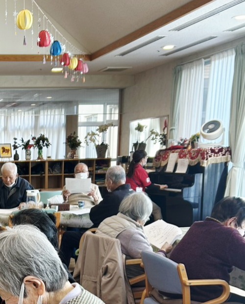 ピアノの柔らかな音色に合わせて春の歌を歌いました。