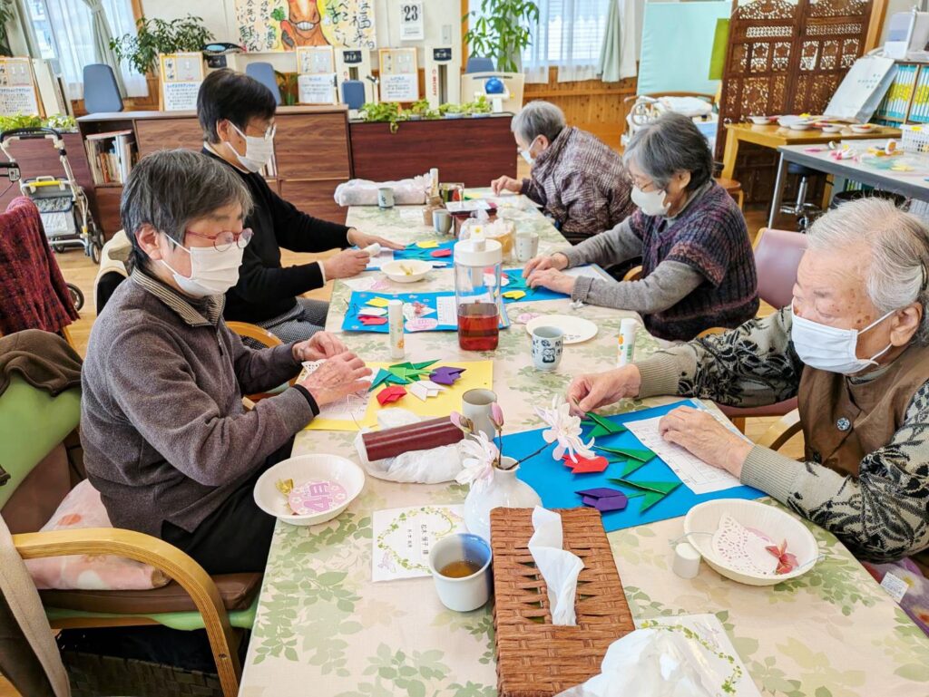 作業中、机を囲んでの会話を弾みます。