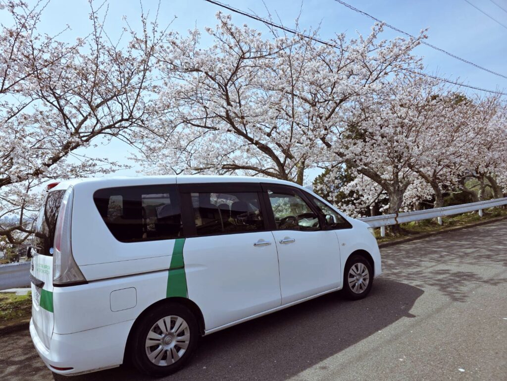 桜の満開まであと一息、といったところ。せっかくの良いお天気ですので、今日の送迎ルートを少しだけ遠回りをしてみました。