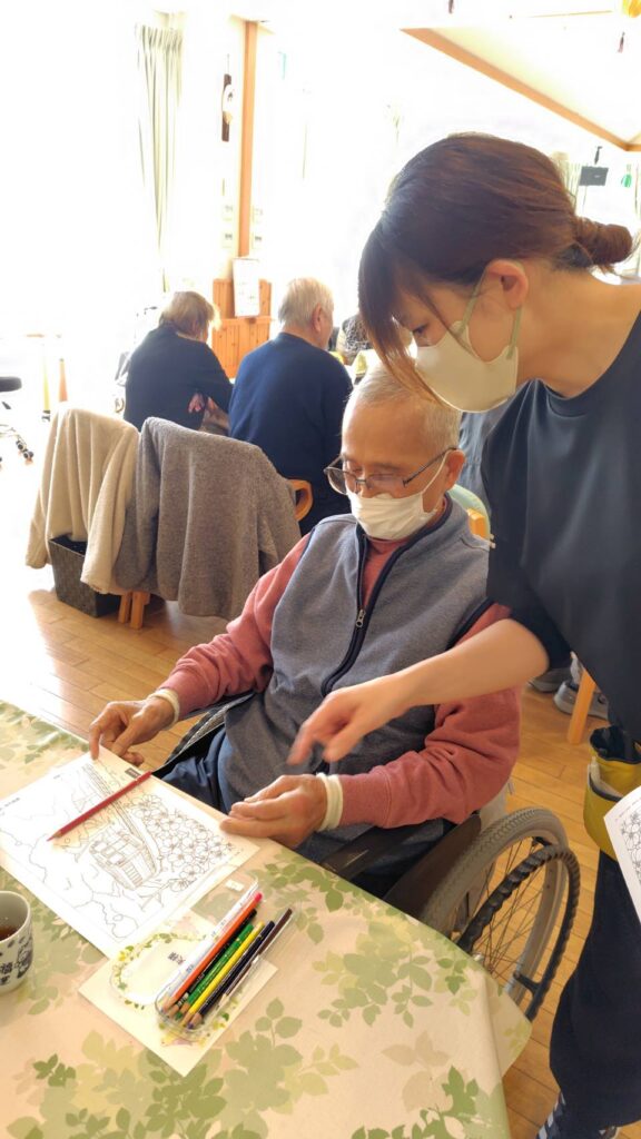 今日の行事は「陶芸&季節のぬり絵」の二本立て!