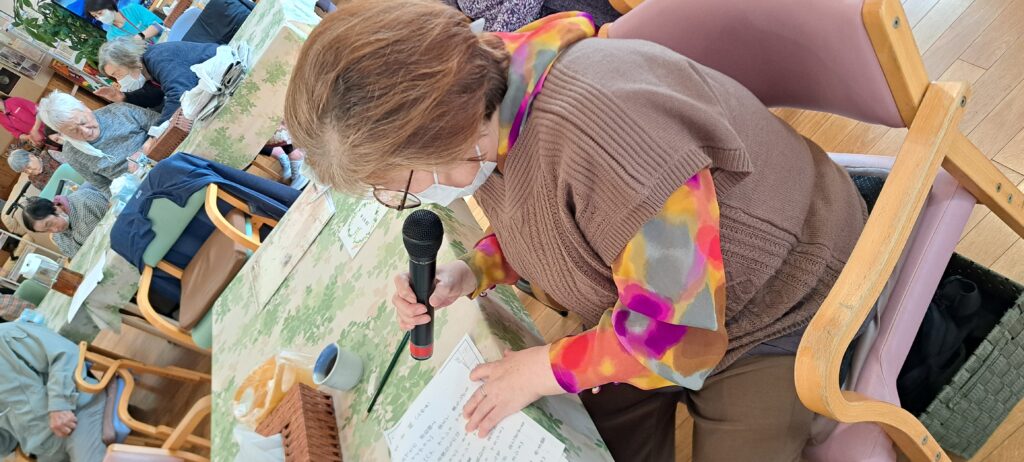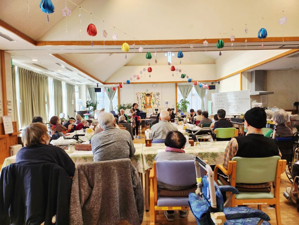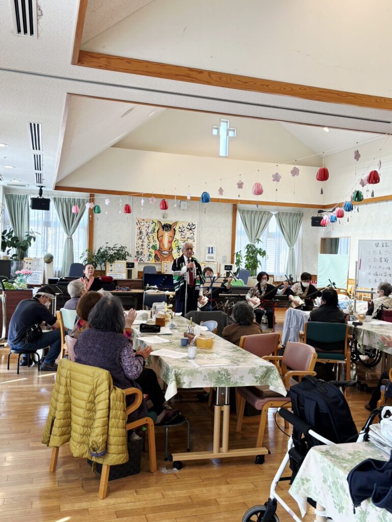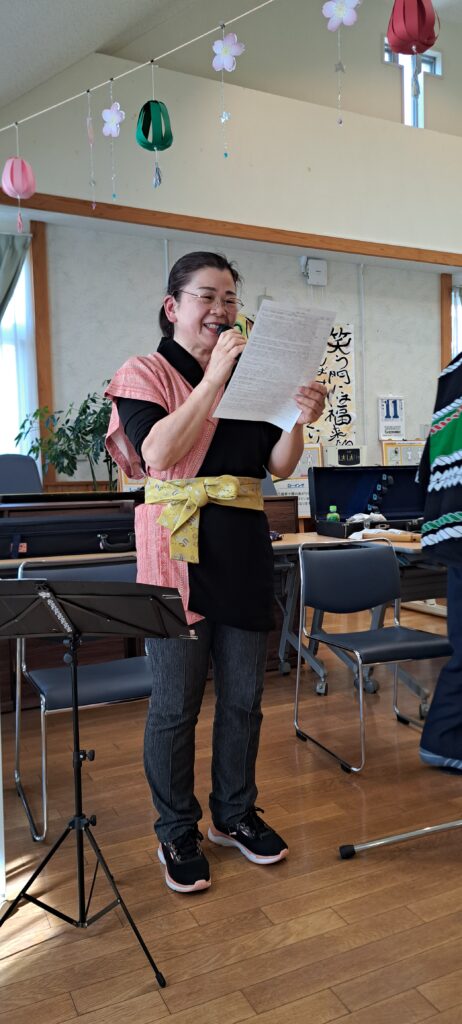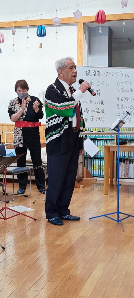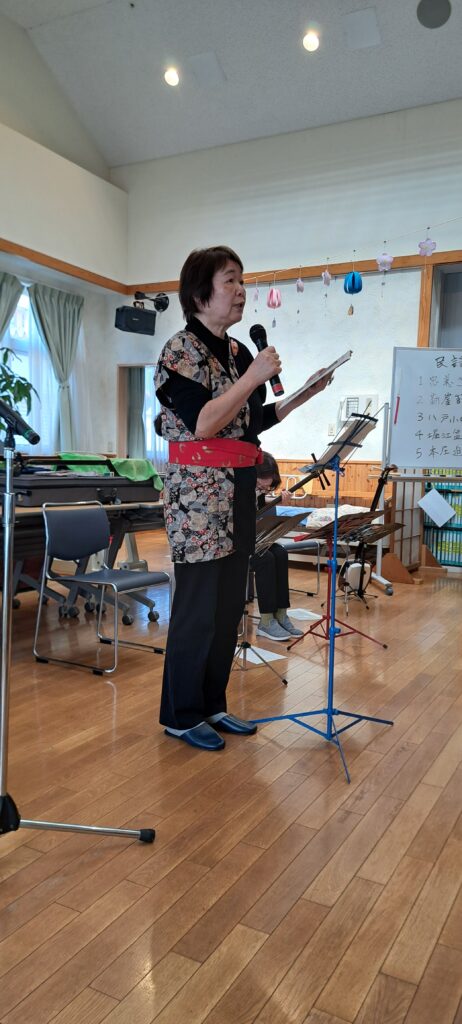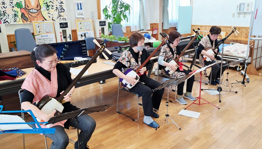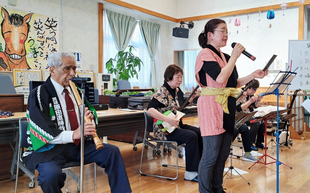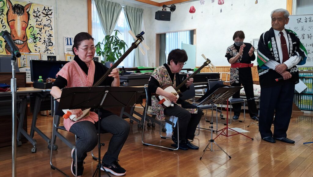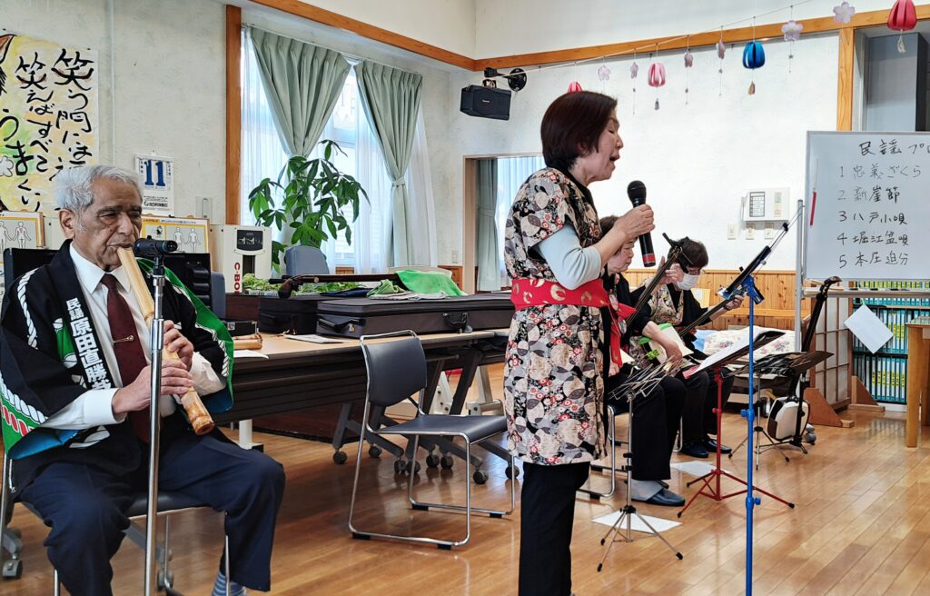 本日の行事は「原田直勝哉会」の皆さんをお招きしての民謡演奏会。