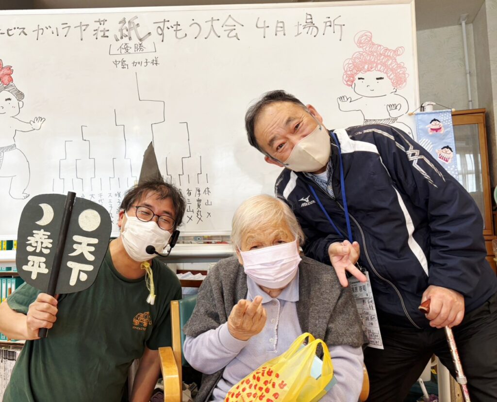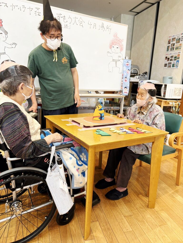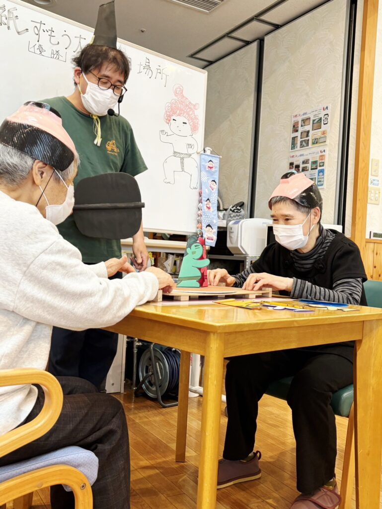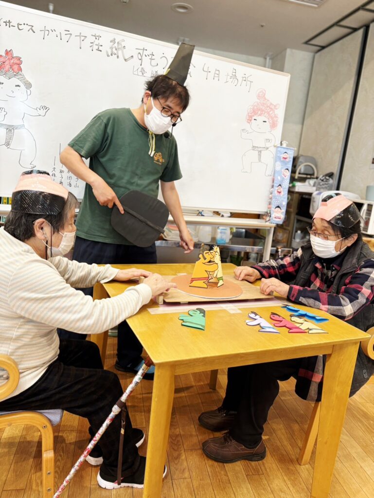 今日の行事は「紙相撲大会」