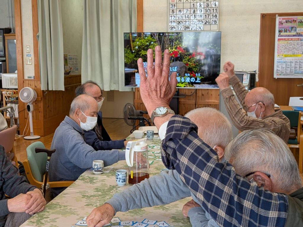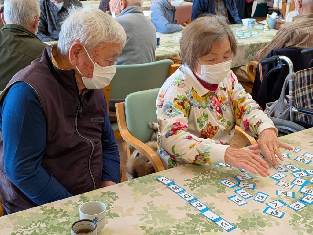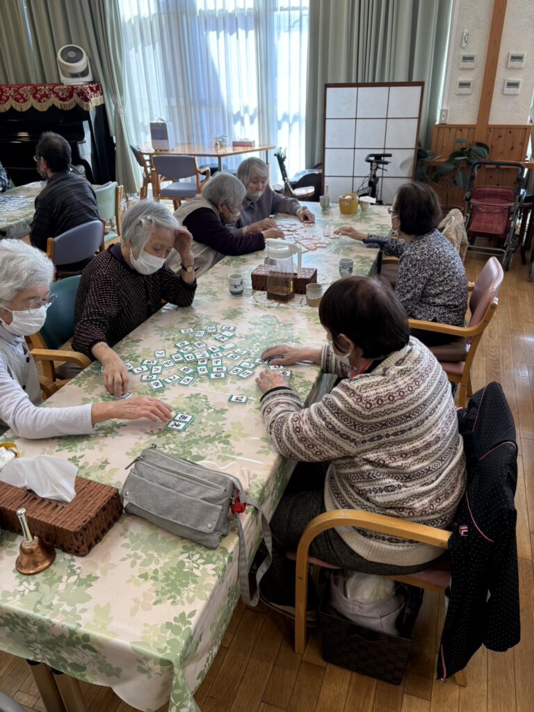 デイサービスでは今日は“のぞみとゲーム”ということで、7チームに分かれて50音カードからのぞみさんが指定した文字を取って、その50音カードをみんなで考えて並べかえて言葉を作りました✨言葉が完成したら我先に手を挙げ、“できました”“できたでぇー”など声が上がっていました❣️みなさんチームワーク良く、次々に正解しておられました👏