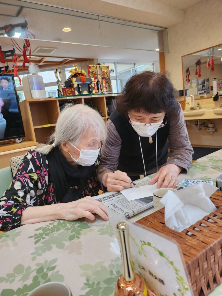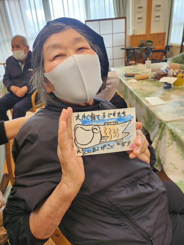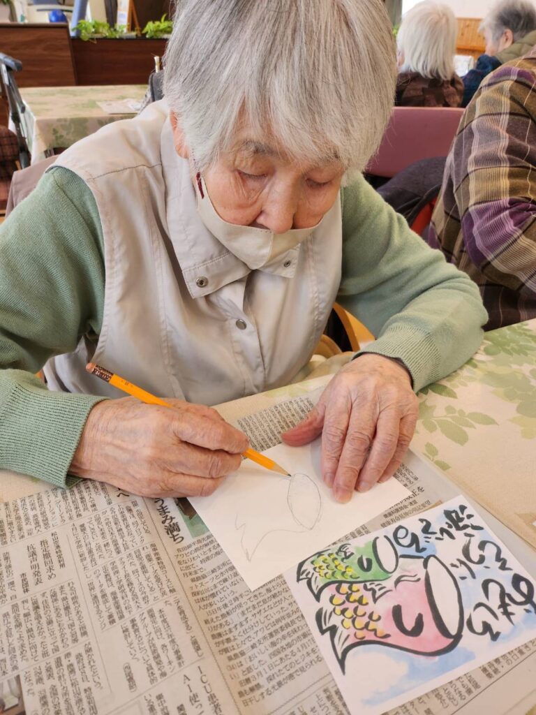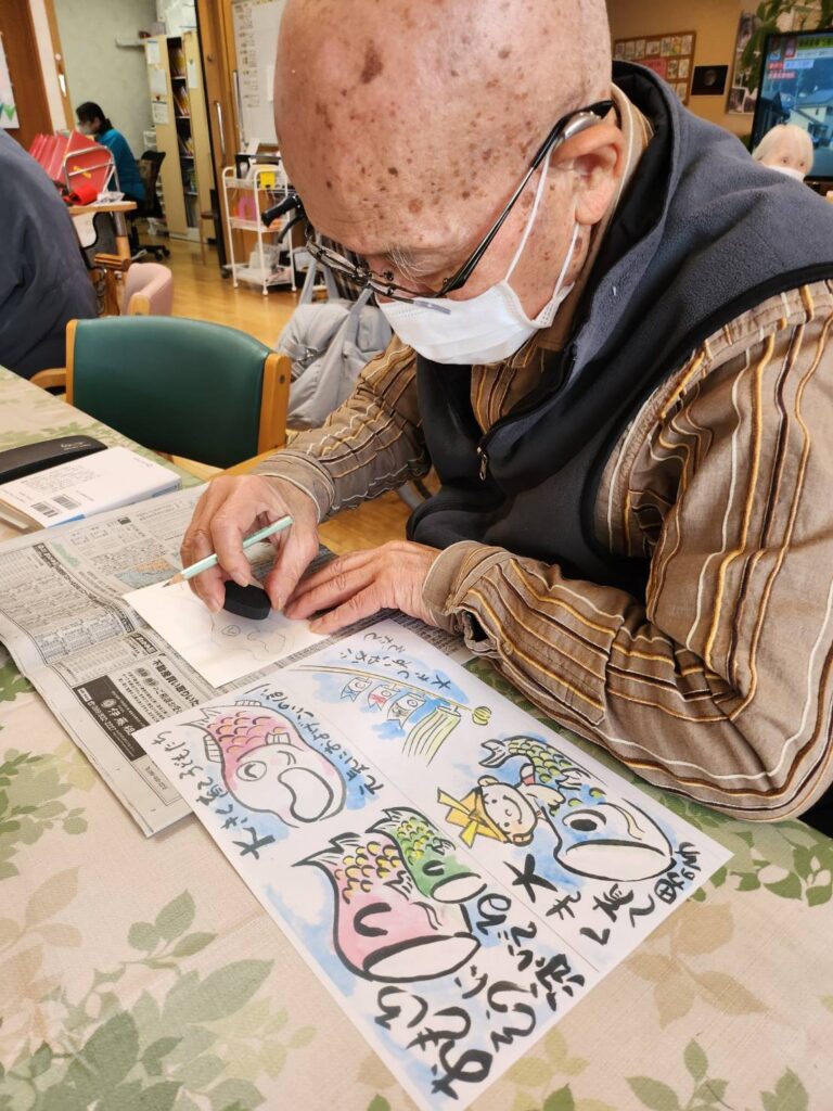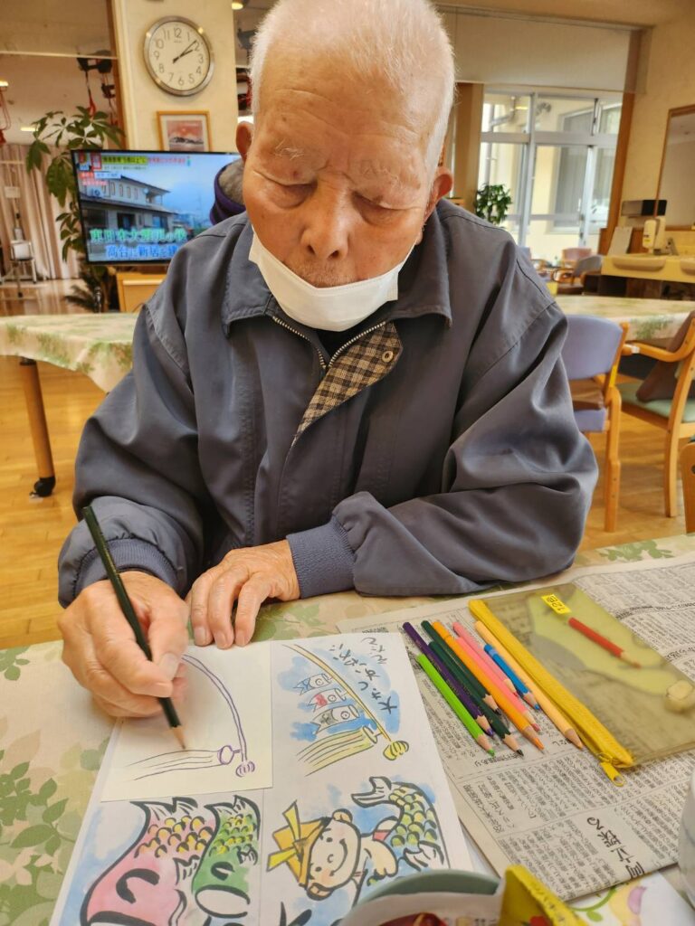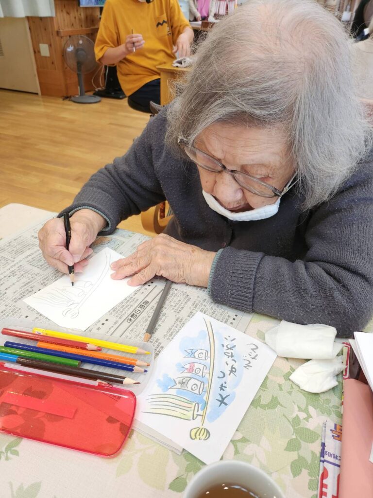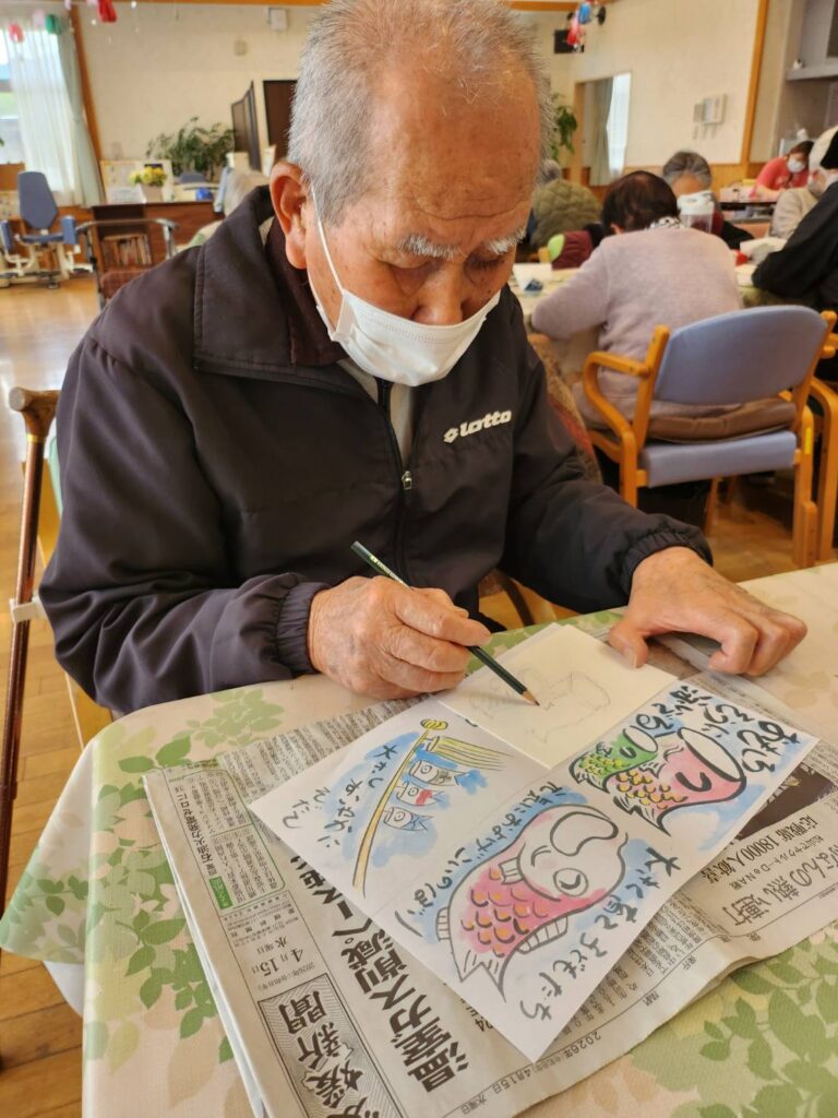 テーマは端午の節句、こいのぼりや兜など、季節を感じる下絵に皆さまそれぞれの思いを込めて彩りを添えていきます。